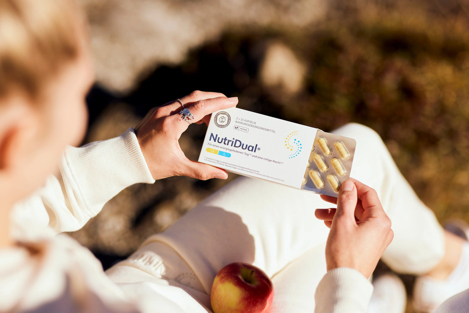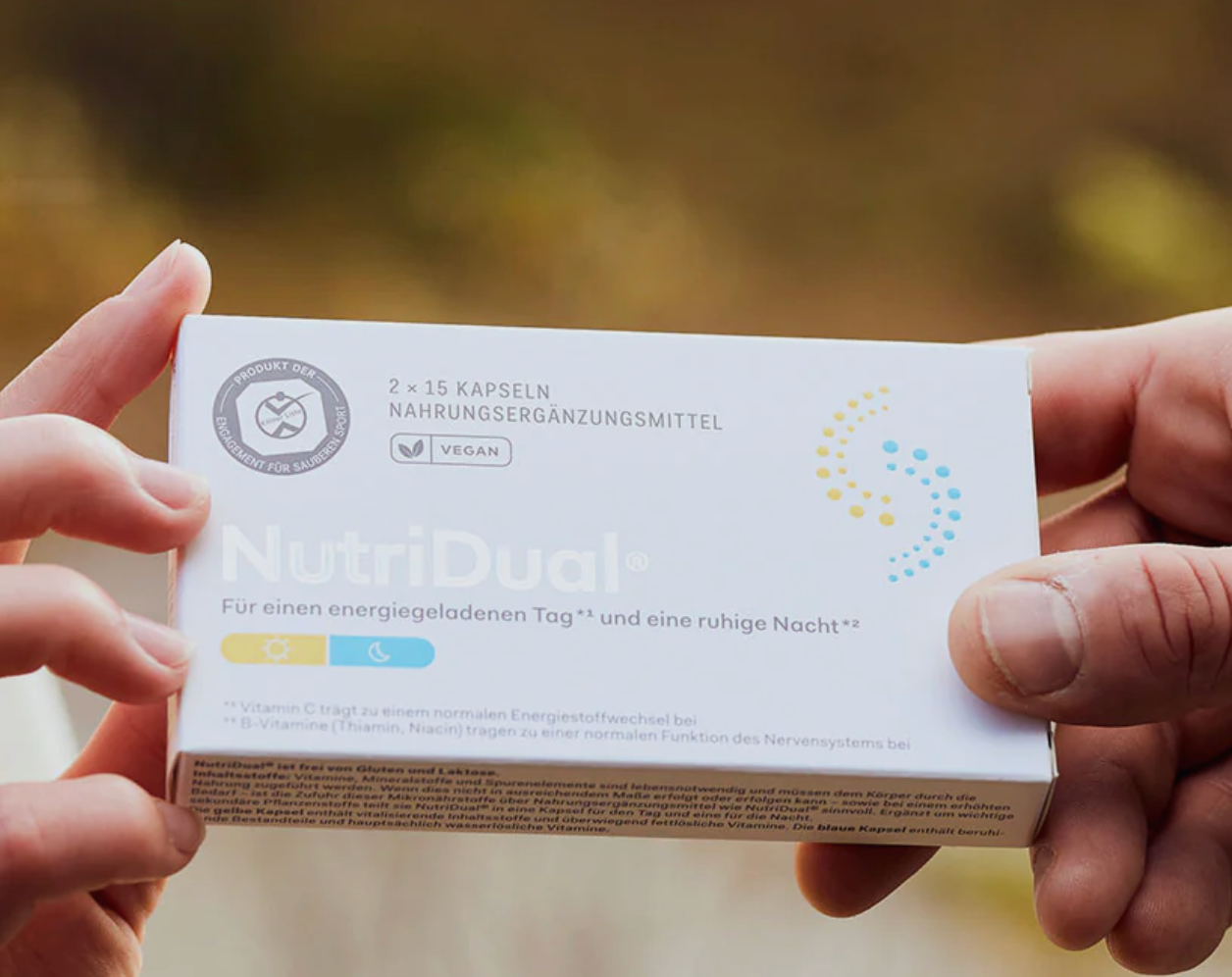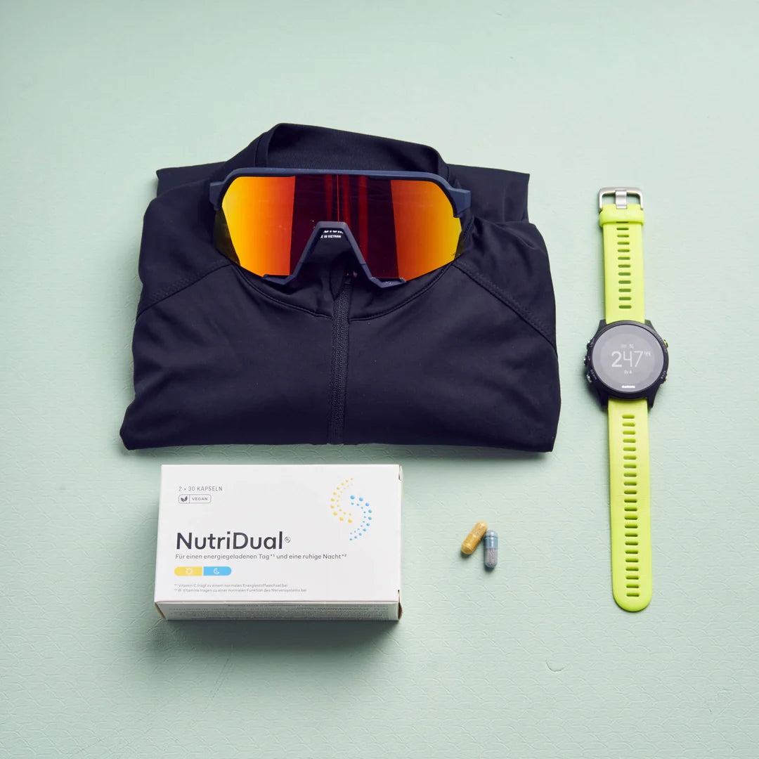 NutriDual® is a vegan dietary supplement with 60 capsules – 30 for the morning and 30 for the evening. It contains all recommended vitamins, is well tolerated, and ideally suited for a vegan diet. The innovative two-capsule system supports daily well-being, promotes a balanced diet, contributes to cardiovascular health, and improves nutrient utilization.